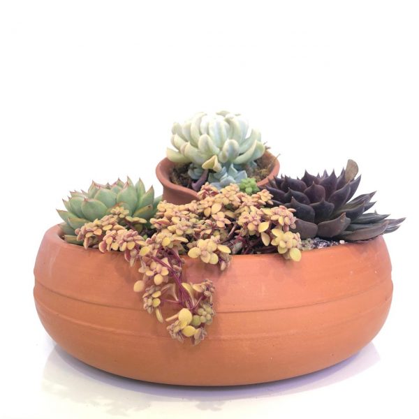 Vaso Cerâmico com arranjo de suculentas (plantas naturais)